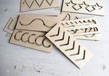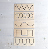 Wooden Our wooden shape boards are the perfect hands-on, writing or drawing resource for your little ones. Montessori Tracing Board tracing boards are perfect for children to practice their Fine Motor skills at an early age. Start with following the lines with your fingering, improving eye and hand co-ordination and add the pencil when ready.