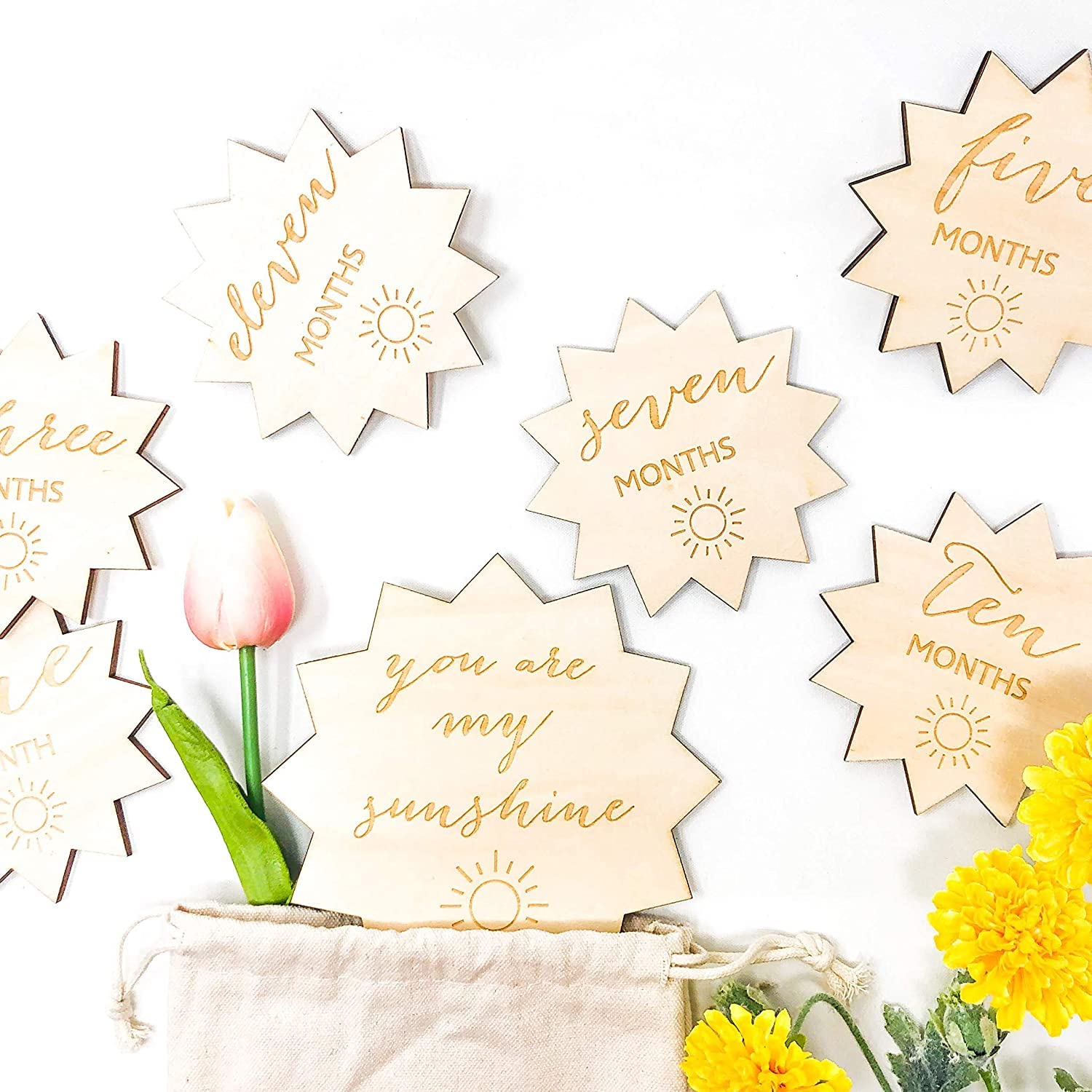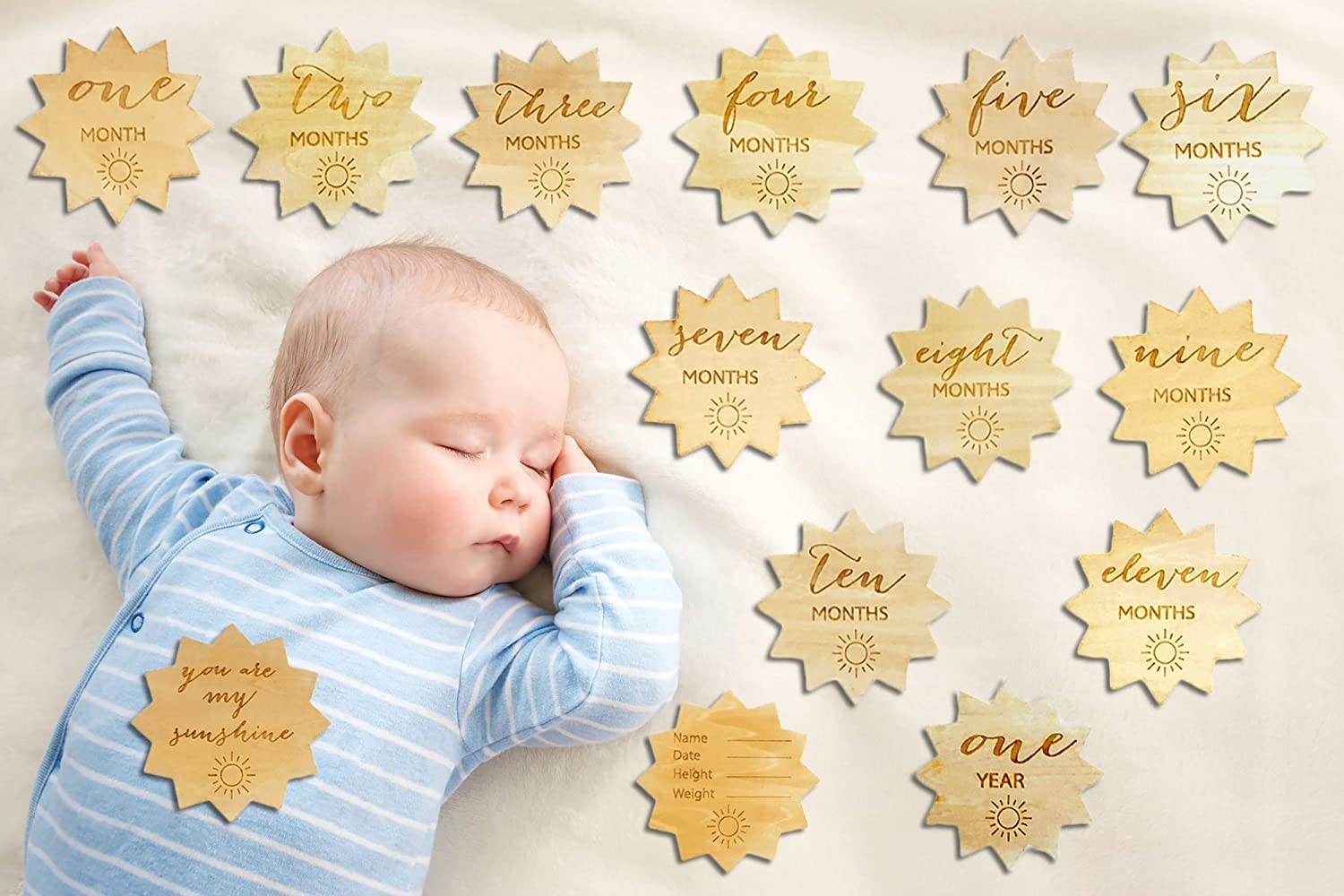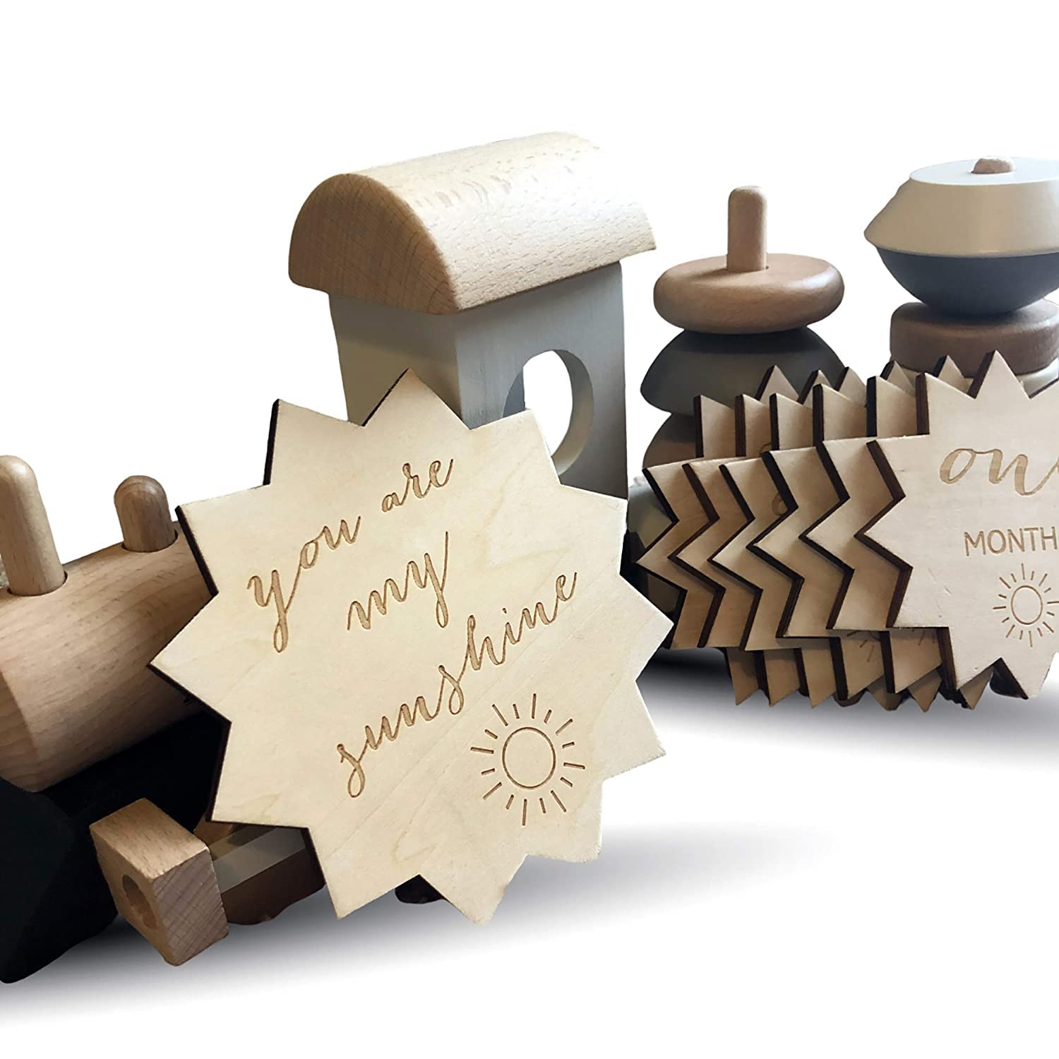 Cliths Wooden Baby milestone cards, Wooden Baby Monthly Milestone Cards, rainbow, rainbow milestone cards, pregnancy, baby shower gift, gender neutral gift, rainbow baby, new baby gift monthly milestone marker cards are the perfect photo prop to capture pregnancy moments and create baby keepsakes. Milestone photo cards engraved. PRODUCT FEATURES: Made of Birch Wood, Comes tied together with a beautiful ribbon, with Free Drawstring bag for storage! The monthly milestone cards will help you beautifully document the most precious first year for your little one. atural and environmentally friendly, the products are made of natural wood This baby milestones set is a touching gift for any new and expecting parent in your life! Have fun wrapping it up and gifting at their baby shower. Get creative and capture photos to share to social media to document mom's pregnancy journey, baby's first twelve months, pregnancy announcements and baby birth announcements. PRODUCT SPECIFICATIONS: BRAND: Cliths PRODUCT: Cliths Baby Monthly Milestone Cards milestone cards COLOUR: Beige SUITABLE FOR: Single Side Baby Milestone Discs for Photo Props Baby Shower Gifts DIMENSION: 3 Inch TAGS: Wooden Baby Monthly Milestone Cards, Wooden milestone baby shower gift, Wood milestone cards, Baby Photo Props, Baby Monthly Milestone Cards and Silicone Sun Teether Gift Set
