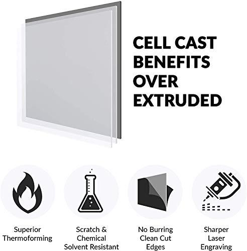 The heavy-duty AmericanElm Acrylic Sheets in Clear White with reflective surface offer an elegant look in your display, signage, or home improvement options. These all-purpose, non-see-through plexiglass sheets are suitable for indoor and outdoor use, providing stronger durability than glass with high-quality weather resistance. The cell cast version offers clean cut edges without burrs, sharper laser engraving, higher resistance to scratch and chemical solvents.