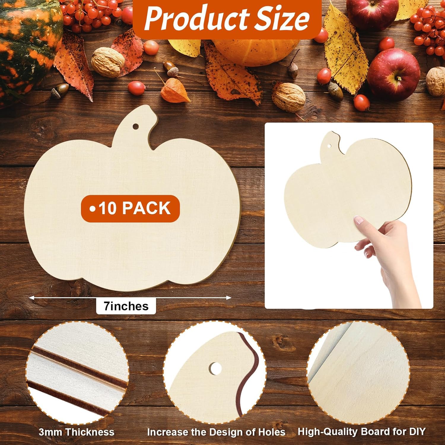 Enhance your holiday décor with our set of 10 American Elm wooden pumpkin ornaments, designed for DIY enthusiasts and craft lovers. Each ornament measures 7 inches in diameter and is crafted from high-quality, 3mm thick American Elm wood, ensuring durability and a natural aesthetic.
