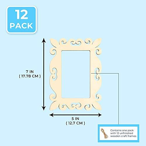 AmericanElm Pack of 12Wooden frames. Use this wooden photo frame for DIY craft, as a gifting option for housewarming or birthday parties or as a decorative art piece for the office and home. You can also decorate and personalize this unfinished craft frame with paint, glue, marker, pom poms, sequins and other glittery accessories. This frame can easily fit in pictures of size 5 x 7 inches.