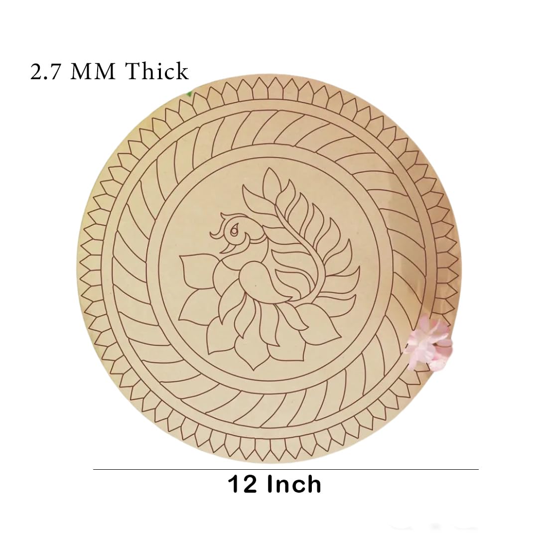 Discover the beauty and elegance of traditional Lippan art with our Wooden Pack of 2 Peacock Design Lippan Art Wall Panel. Measuring 12 inches in diameter and 2.7mm thick, these panels are perfect for anyone looking to explore their creative side without the hassle of making their own base from scratch. The smooth, flat surface is ideal for painting and decorating with a variety of materials, including natural pigments, beads, and mirrors.