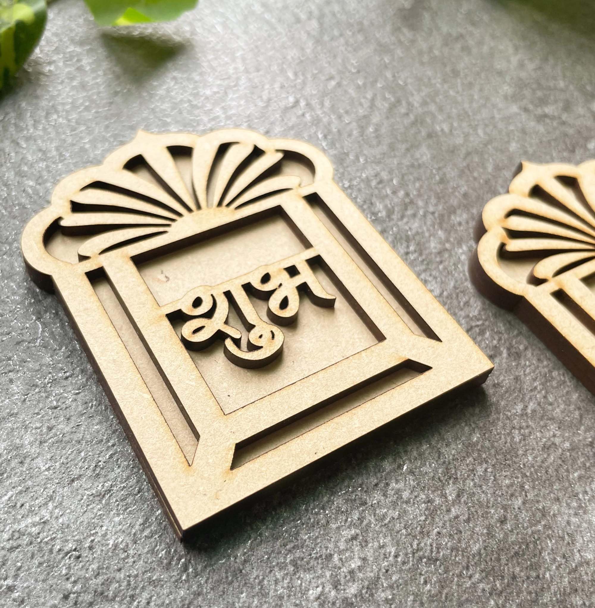 Bring elegance and tradition to your Diwali celebrations with the Cliths Shubh Labh Mini Jharokha Design Wooden Cutouts. These cutouts are perfect for DIY enthusiasts and anyone looking to infuse their home with spirituality and beauty. Proudly crafted in India, they reflect the rich heritage and craftsmanship of Indian artisans.