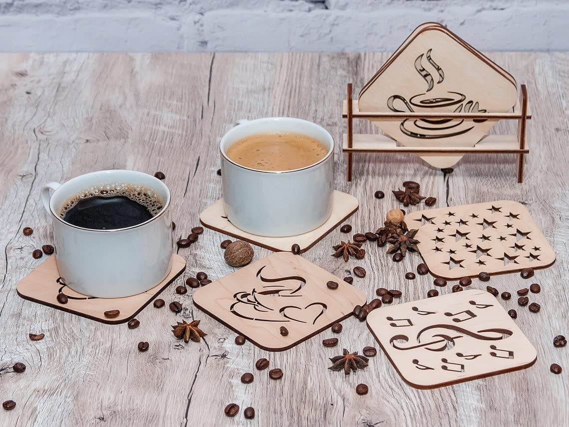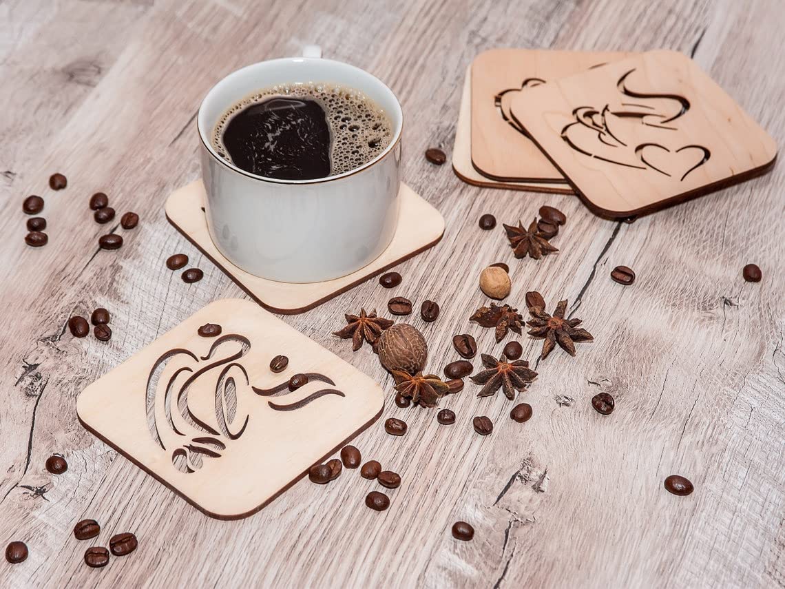 American-Elm 4mm Thick Stand with Set of 4 Coasters for Cups and Glass, Coasters for Drinks, Natural Wood Square Drink Coaster, Decorative for Home & Kitchen. Coaster Set is an excellent choice for your dining table. Hand woven natural heat insulation pads decorates your dining table and gives it an exotic look. Unique coasters protect your dining table from damaging effects of heat from hot utensils. Also protects table from scratches and wet marks. Prevent wet ring marks from forming on your table. Keep dishes, plates, kettles, teapots, bowls, pans and serve ware on this Wooden coaster the life of your dinner table