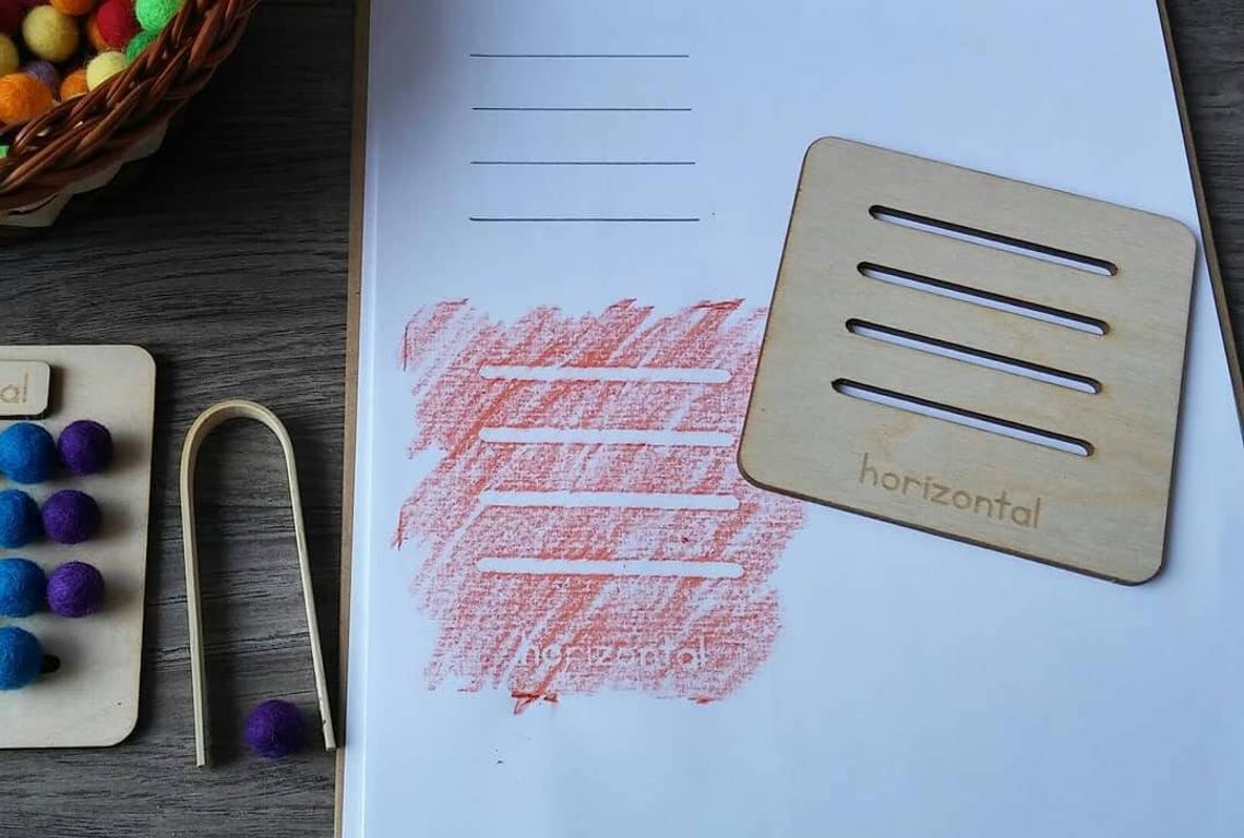 Wooden Types of Line Stencils Fine Motor Occupational Therapy Pre-Writing Handwriting Preschool Montessori Waldorf Reggio Homeschool