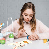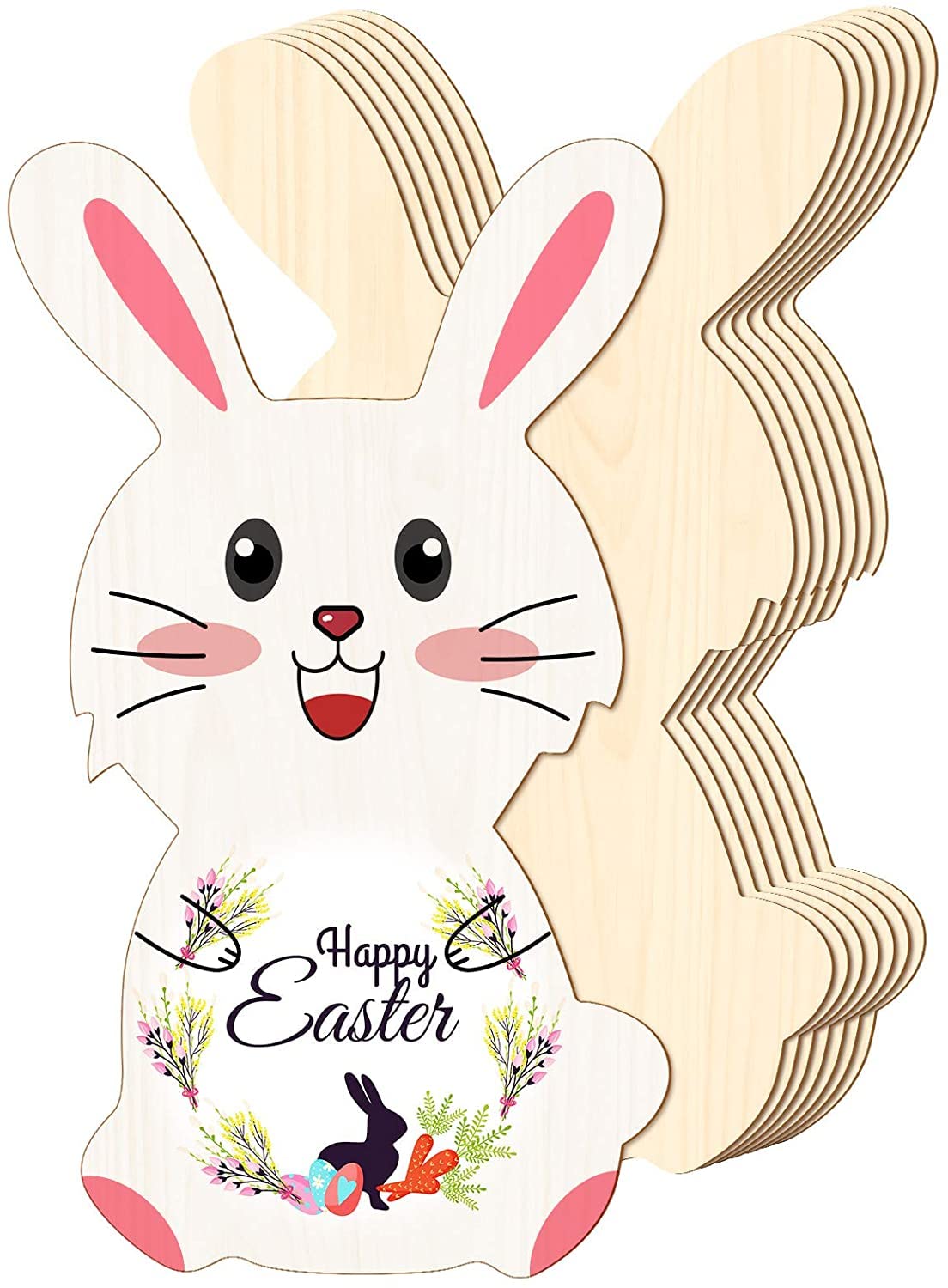 American-Elm 10 Pieces Easter Wooden Bunny Cut-outs Unfinished Wood Rabbit Cut-outs Wooden Rabbit Shape Craft Tags Easter Wood Bunny Slice Ornament for Easter Spring Home Decor Classroom DIY Craft. The wooden rabbit shape slices can be applied for DIY hand paintings, Easter signs, gift tags, handwriting tags, wish cards, table numbers, hangers, embellishments, coasters, photo props, and more art and craft projects. The natural blank wood slices are smooth in both sides, so you can paint or draw as you like, and DIY you own crafts, and then you can drill a hole and thread them with rope, ribbon or lace, and hang them anywhere as you like.