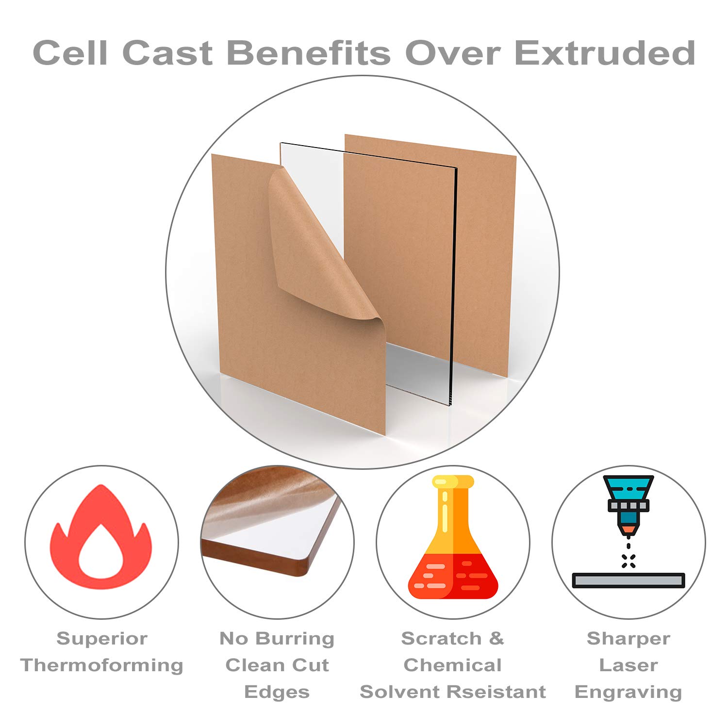 It is clearer than window glass and will not turn yellow. Cast acrylic sheet is also available in a large variety of transparent and translucent colours. PRODUCT FEATURES: