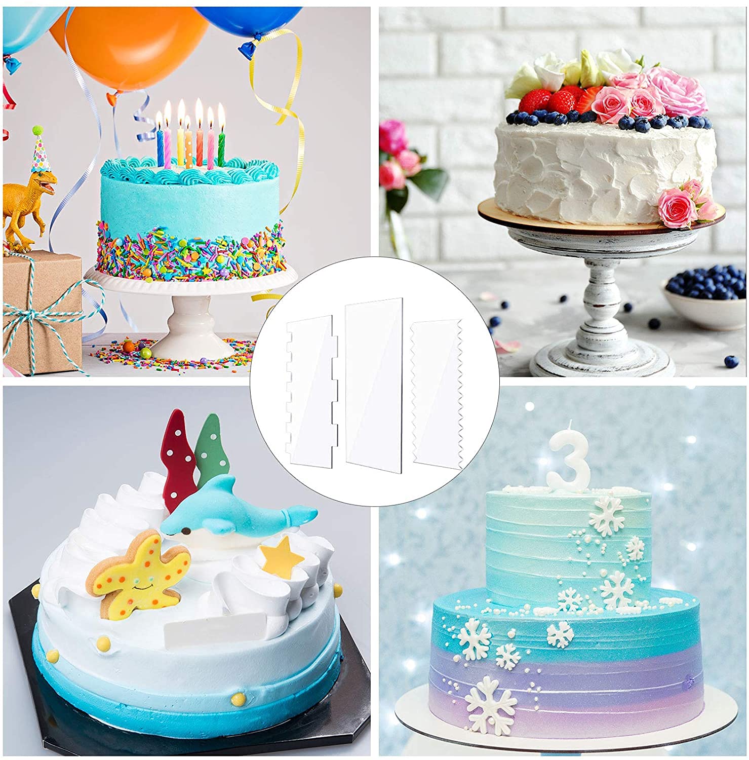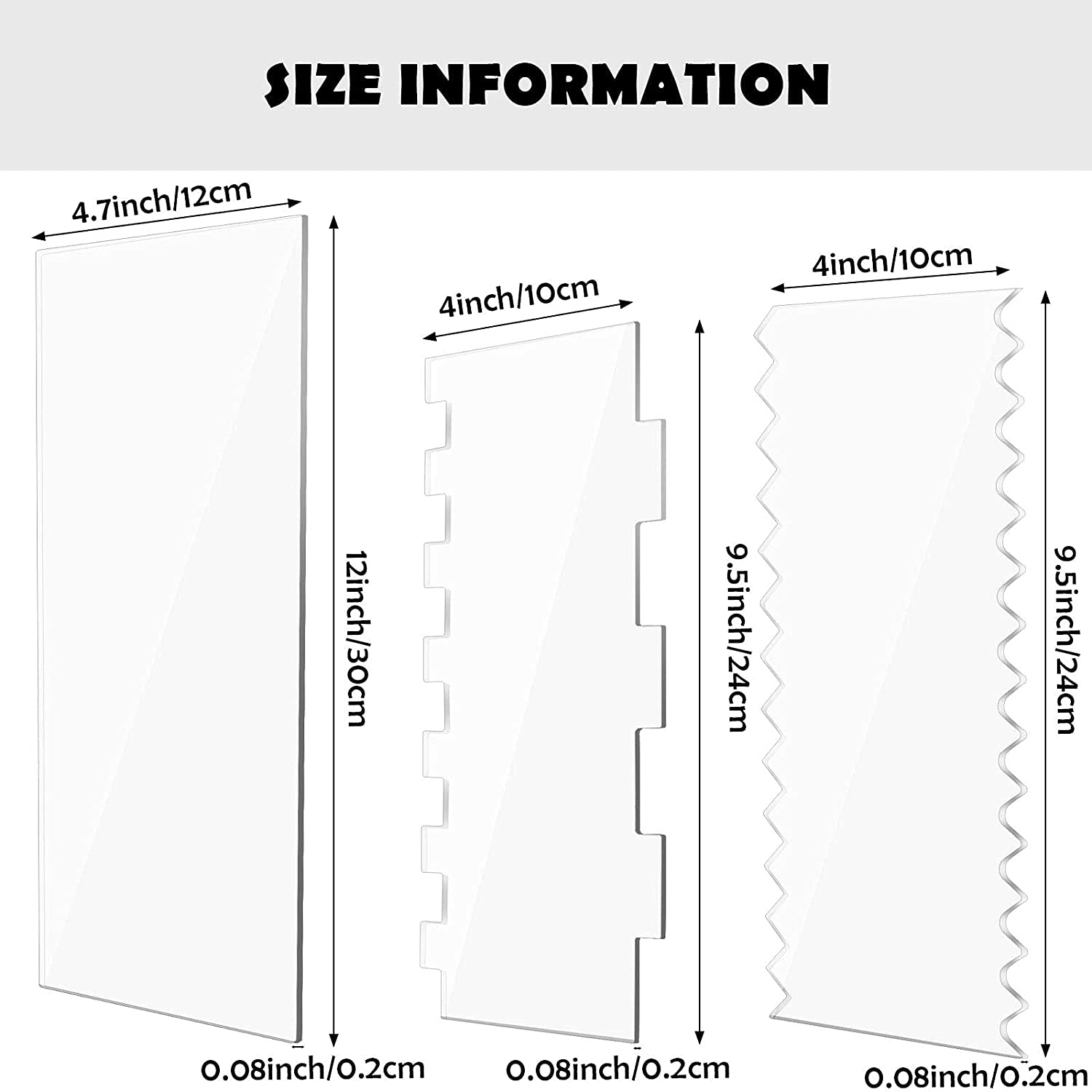 PRODUCT FEATURES:Cake Scrapers Clear, Icing Scraper Frosting , Edge Stripe Combs , Smoother Scraper