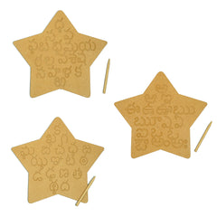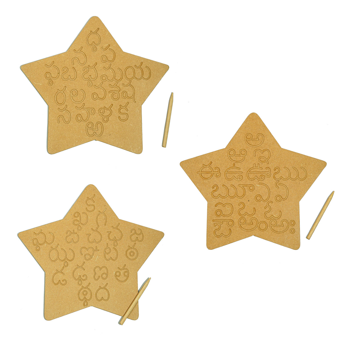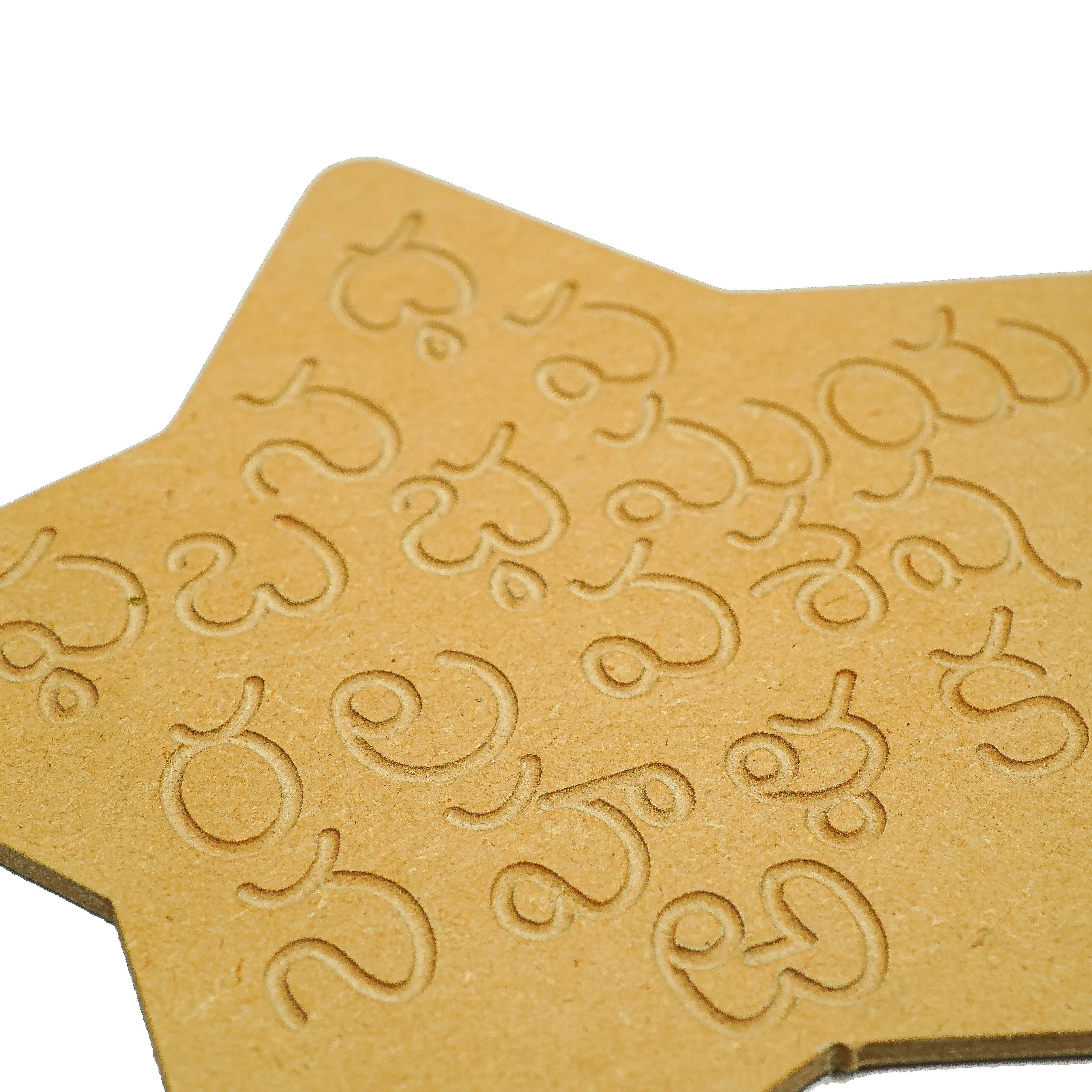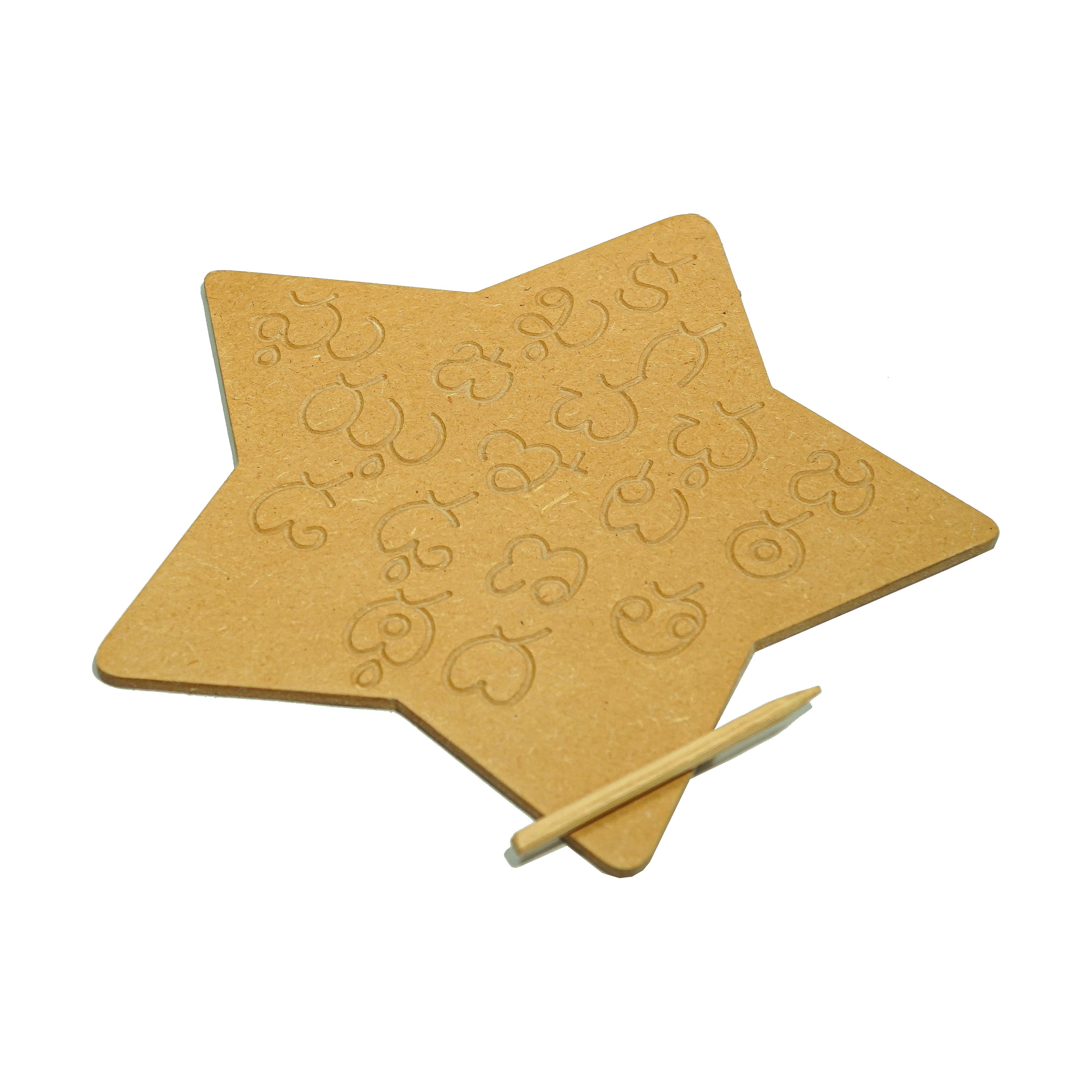 This is a wonderful engraved board to help your child for brain development to form the alphabet correctly. The set contains all the Telugu alphabets engraved on natural MDF board and a wooden dummy pencil. Child can use the wooden pencil to trace the Telugu alphabets on the board. The Telugu Alphabet Tracing Board helps: To learn sequencing and correct order of the Telugu vowels and consonants To learn and improve their motor skills, sequencing and many other subtle skills. Builds their confidence and thinking skills too. Contains: 3 Boards & Dummy Pencils