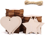 Cliths Unfinished Hearts shape cutouts, Wooden Heart & Star Shape Slices Blank Name Tags Wine Tag with Hole, All of our shapes high quality birch plywood. Ideal For Wedding, Decorations, Scrapbooking, Home Décor, Art Projects, Can Be Painted. Sufficient quantity and size to meet your many needs in daily life, serving as beautiful ornaments for holiday. Unfinished Heart & Star crafts cutout with Natural Jute Twine. Perfect for adding creativity to your scrapbook pages.