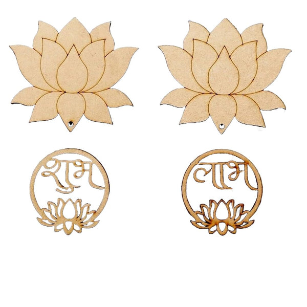 Add a touch of traditional elegance to your Diwali celebrations with this beautiful Lotus With Hanging Shubh Labh Diwali Decor set. Perfectly crafted from 3mm thick MDF, this set includes a Lotus design measuring 4.5 x 4 inches and a "Shubh Labh" hanging piece measuring 3.15 x 2.75 inches, making it an ideal addition to your festive decorations.