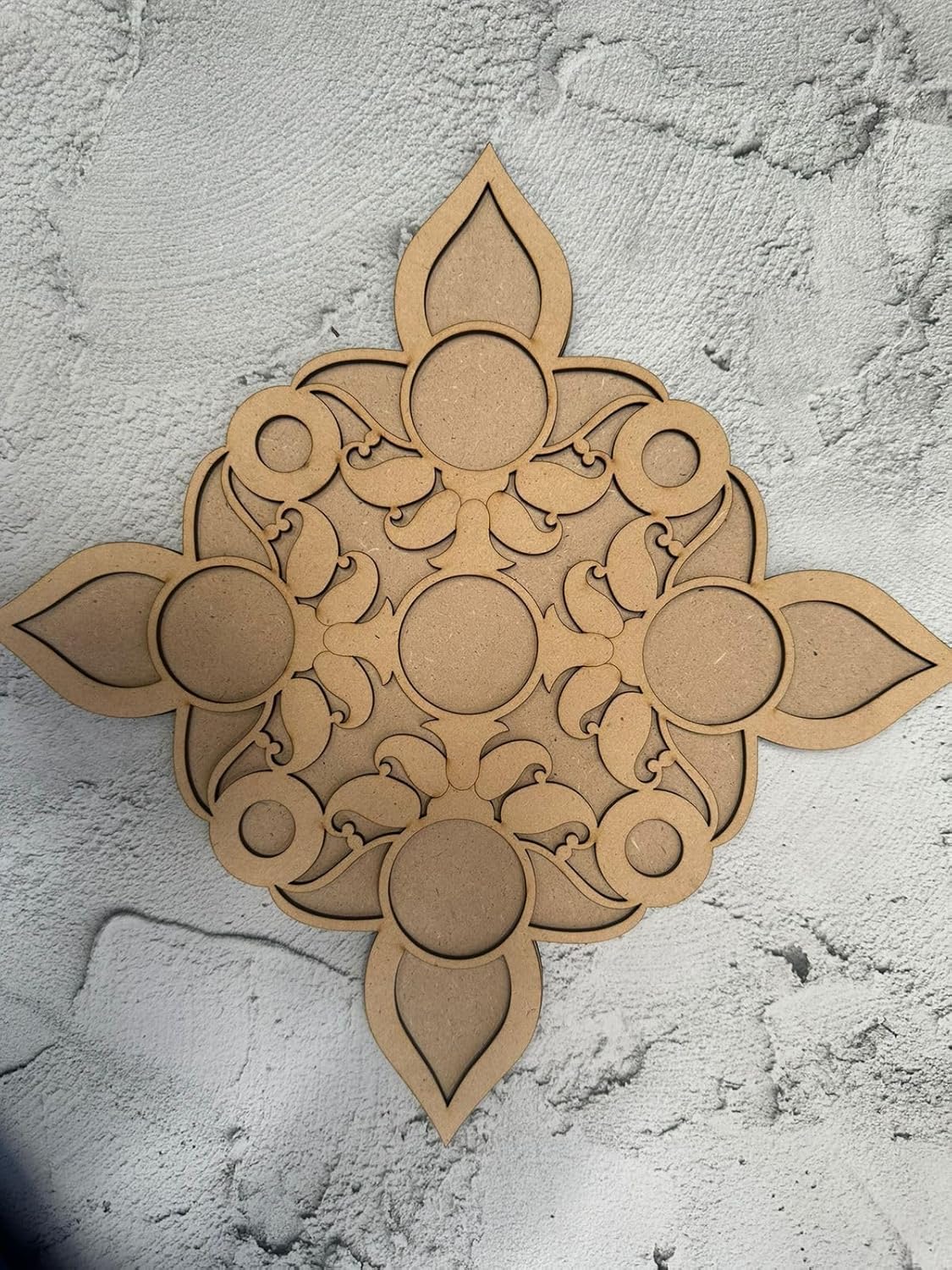 Bring tradition and elegance to your Diwali celebrations with our Pack of 2 Wooden MDF Rangoli Cutouts. Order now and start decorating!