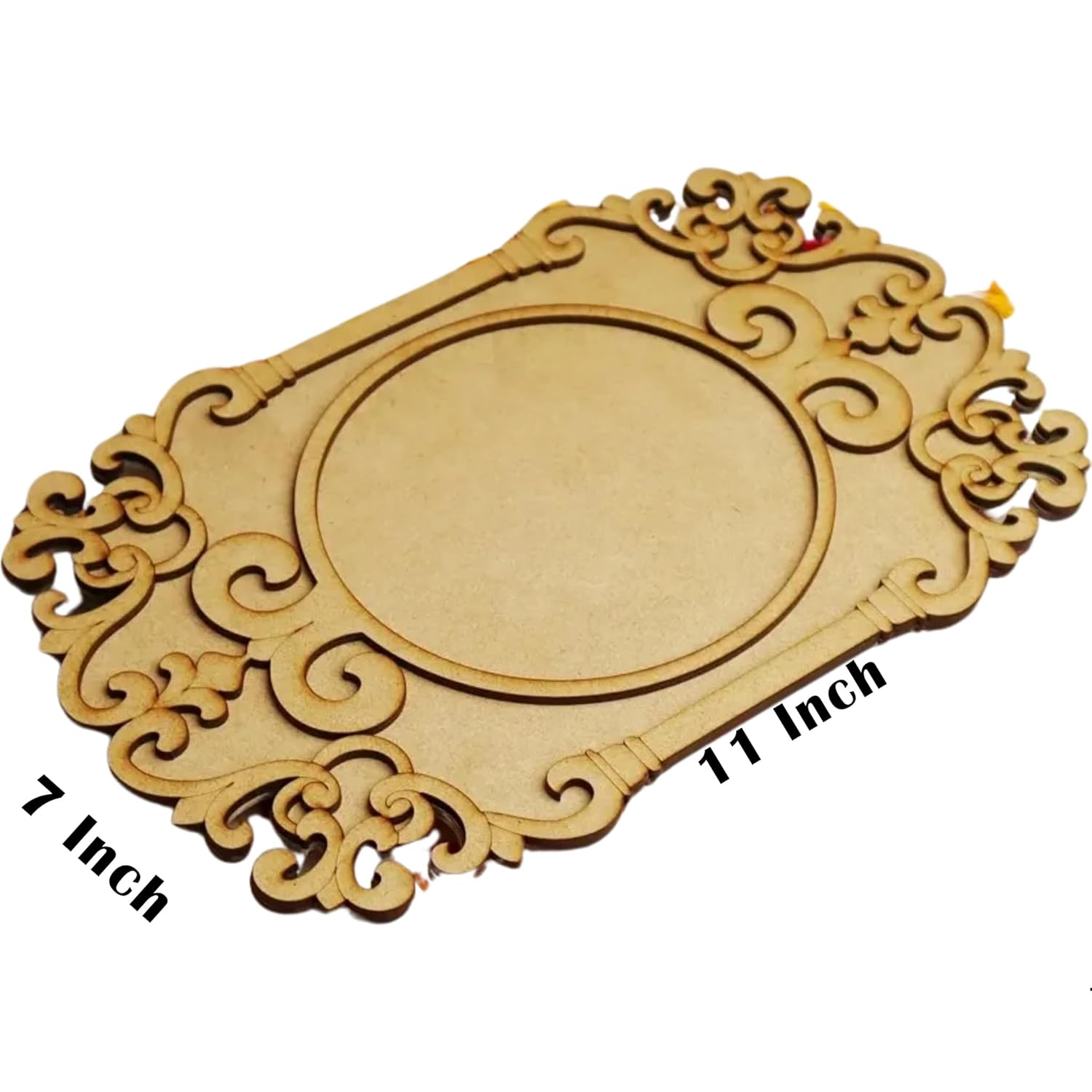 Embrace tradition with this exquisitely crafted MDF Wood Pooja Thali Serving Platter, which beautifully showcases the artistry of handcrafted design while providing ample space for all types of sweets, snacks, dry fruits, treats, cakes, muffins, flowers, gifts, T lights, and candles.
