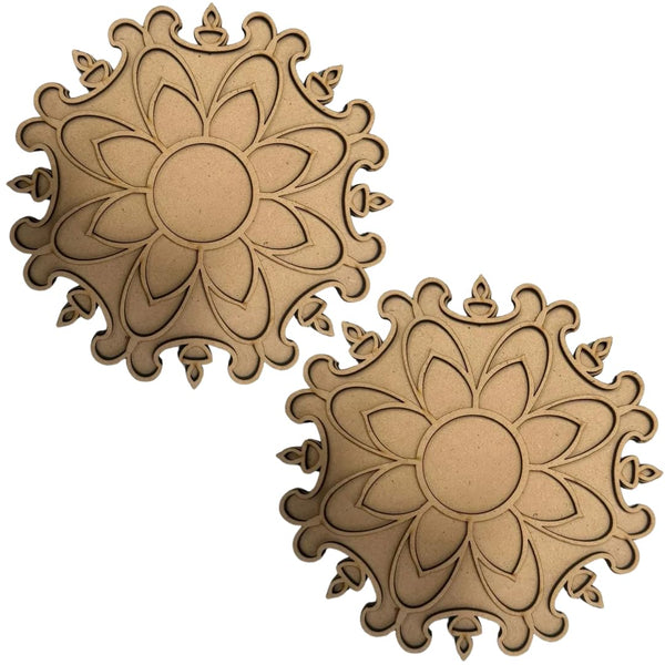 Bring tradition and elegance to your Diwali celebrations with our Pack of 2 Wooden MDF Rangoli Cutouts. Order now and start decorating!