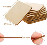 American Elm 50 Pcs 4 inch square wooden coaster Natural Blank Wooden Square Cutouts for DIY Crafts, Painting, and Home Decor
