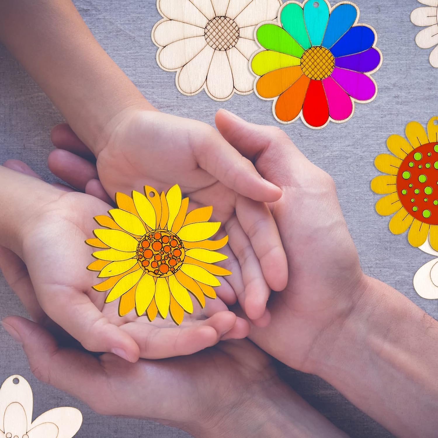 Bring your creative ideas to life with American Elm's 24 Pieces Wooden Sunflower Wood Cutout set. These 3.1-inch unfinished wood cutouts are perfect for a variety of DIY crafts, home decor projects, and educational activities. Each piece is made from high-quality, smooth wood, ensuring durability and ease of use.